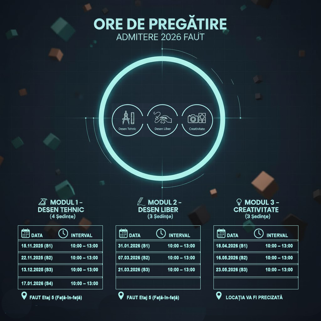 Visezi la o carieră în arhitectură? Ți-ar plăcea să dai viață ideilor tale prin forme, spații și creativitate? Facultatea de Arhitectură și Urbanism din Timișoara (FAUT) te sprijină să faci primul pas spre