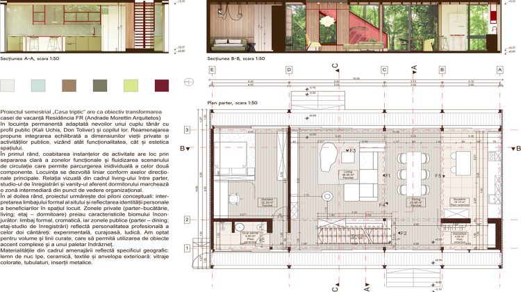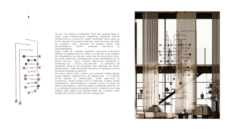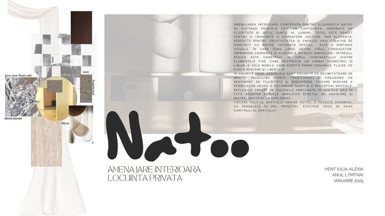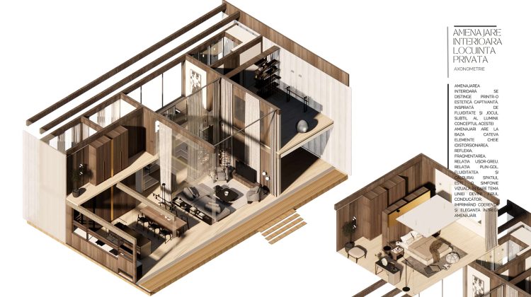 Proiectul vizează amenajarea și mobilarea zonelor de zi și de noapte din cadrul unei locuințe contemporane cu caracter permanent, prin adaptarea unei construcții pre-existente, iar condiționările de temă conduc către o configurare maximală a locuinței, atât ca spațiu dar și ca buget. Locuința este destinată unei personalități din lumea contemporană reală, cu activitate în sfera artistică în sens larg. Soluția presupune înțelegerea profilului și aspirațiilor beneficiarului, conceptul amenajării traducând preferințele sale plastice și stilistice.