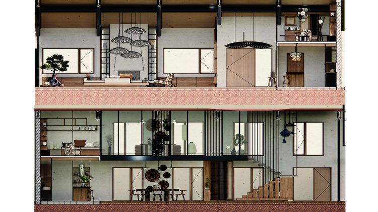 The project aims to arrange and furnish the living areas of a contemporary permanent home, by converting spaces that previously had another function. The work support can be selected by students from three distinct structural variants (concrete, wood or metal), each of which integrates the possibility of creating a split level. The home is intended for a couple, and the theme leads to a rather maximal configuration of the home, both in terms of space and budget. The operating mode chosen for a domestic interior combines an abstract theme derived from the concept with a development close to reality by interpreting requirements and references imposed by the profile of the inhabitants, which the students also outline. The approach also integrates the guidance of a structural engineer, so that the operation on an existing space is also experienced from a technical perspective.