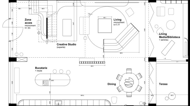 AMENAJARE ZONĂ DE ZI ÎN CADRUL UNEI LOCUINȚE CONTEMPORANE