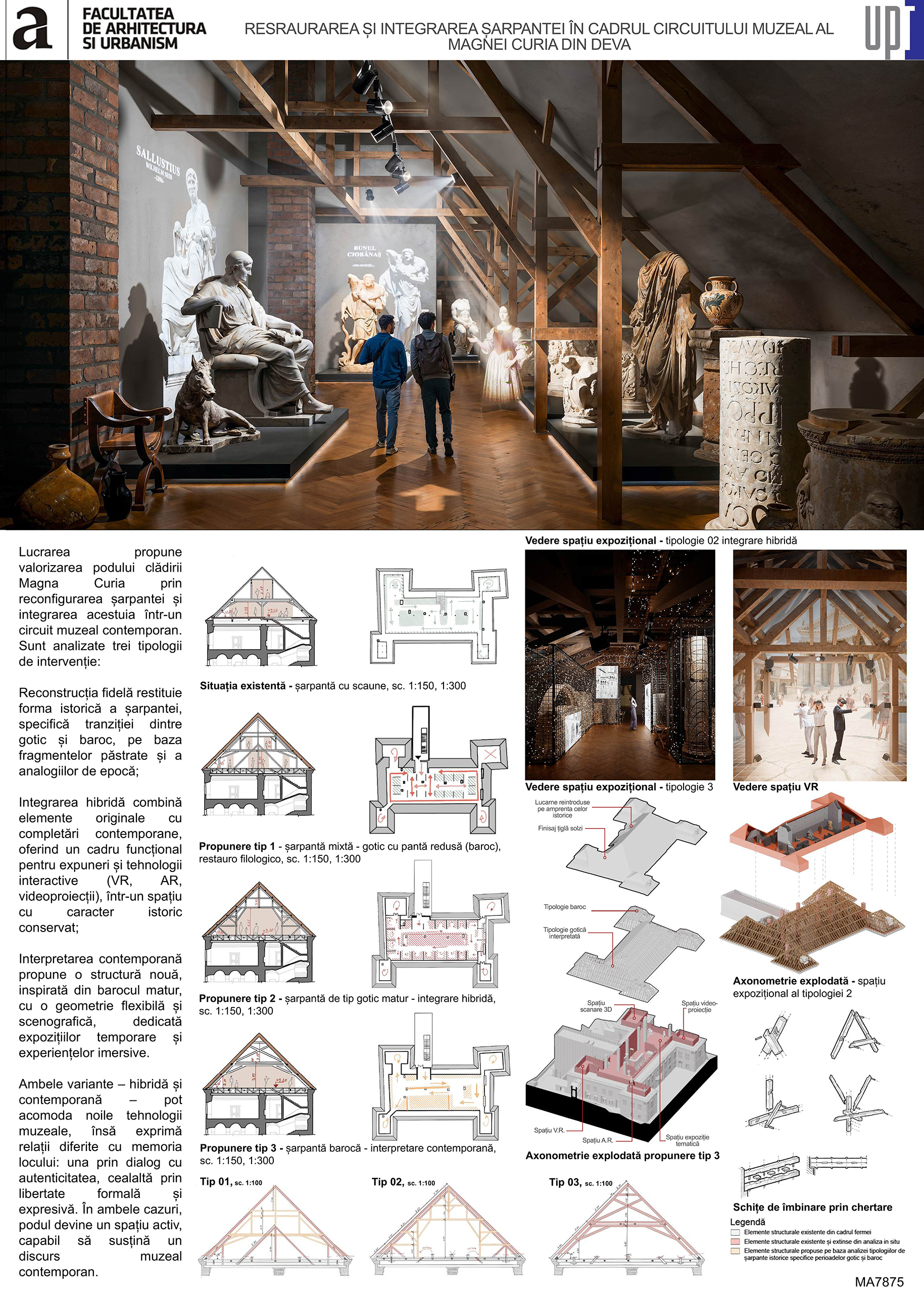 This paper proposes an applied research on the possibilities of restoration and functional reintegration of the historic roof structure of the Magna Curia building in Deva, analysing this intervention from a complex, interdisciplinary perspective that combines architectural history, critical restoration, construction technology, and contemporary museum scenography. Magna Curia, a building representative of Transylvanian architectural heritage, has lost an essential component in recent decades — its original roof structure — which has not only changed the volumetric perception of the building but also blurred its architectural identity within the urban setting in which it is located.